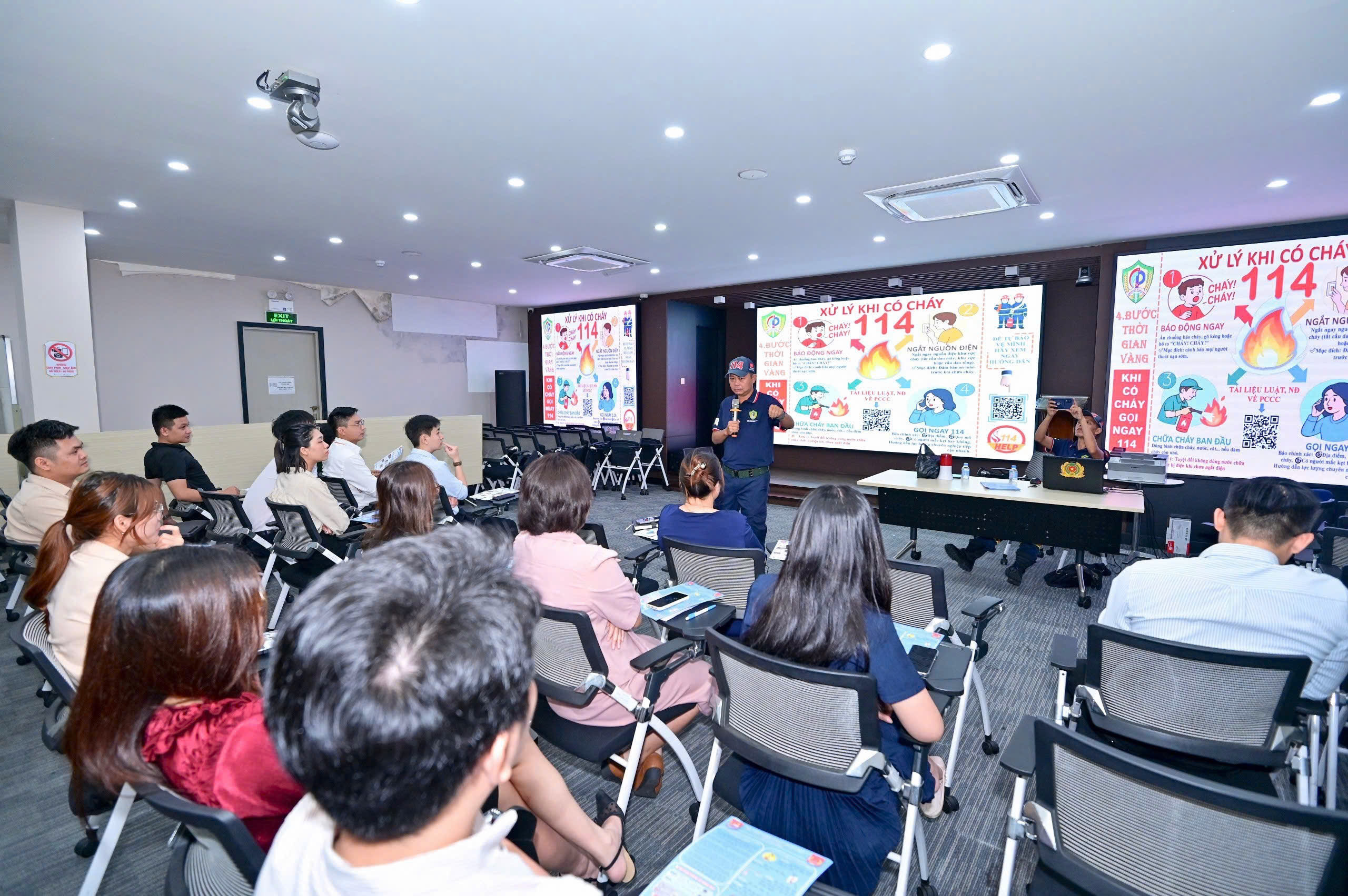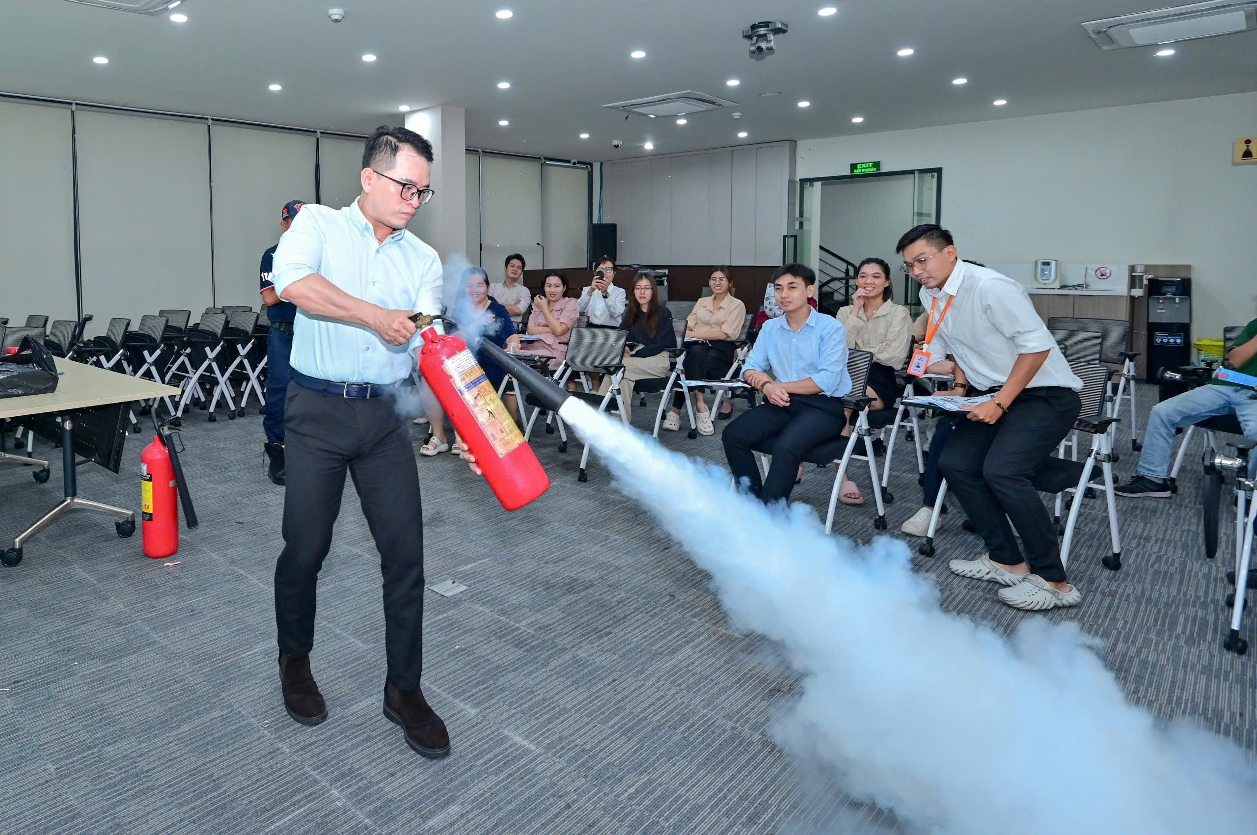 Trong không khí nghiêm túc nhưng gần gũi, CBNV đã được hướng dẫn quy trình thoát nạn khi xảy ra sự cố cháy nổ, cách sử dụng các thiết bị chữa cháy cơ bản và phương pháp xử lý ban đầu, cũng như phối hợp với lực lượng chức năng khi gặp tình huống khẩn cấp. Phần thực hành trực tiếp giúp mỗi người hiểu rõ hơn cách ứng phó và tự tin hơn trong việc xử lý tình huống.